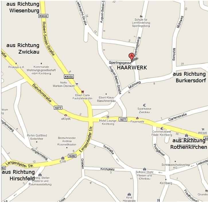 aus Fahrtrichtung Rothenkirchen an der Ampelkreuzung Brühl nach rechts, und danach gleich wieder rechts auf den Mühlweg , 2 Querstraße links zum Sperlingsberg